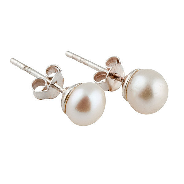 Earrings featuring genuine freshwater pearl on sterling silver stud with sterling silver ear nut.